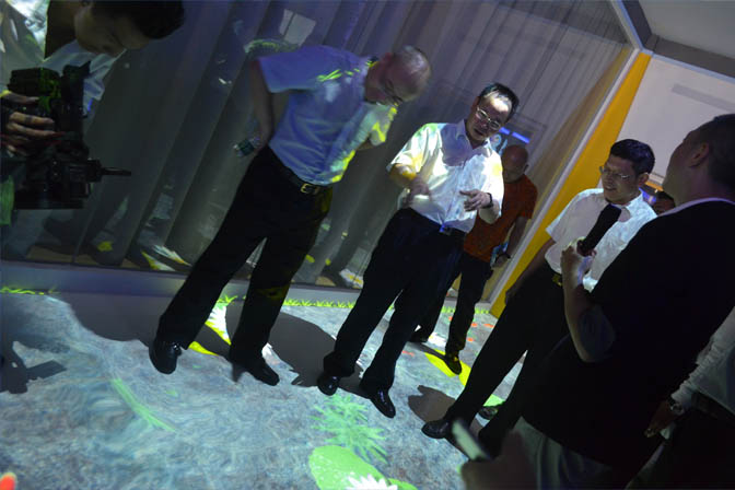 開園當日,寶安區副區長胡細銀、中糧智匯創新園總經理穆林等在振邦視界總經理徐志偉的帶領下,攜innobank創意銀行、深圳市南山海歸聯誼會眾創空間、中山大學、華南理工大學創客基地等9家首批落戶企業,以及來自知名創客圈、智能硬件圈、孵化圈、資本圈、金融圈、平臺圈、媒體圈、公共服務平臺等近50家單位的代表參觀了由我司與中糧福安公司聯合打造的硬件體驗中心。其間,受邀嘉賓對所展出的虛擬迎賓,全息成像、投影融合、地面互動、電子簽名、多點觸控、滑軌電視等數套多媒體數字展廳新技術贊不絕口,暢游在互動體驗的樂趣中,感受科技與空間藝術的完美結合。